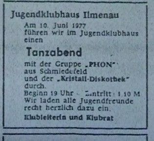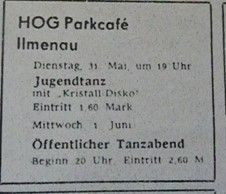 Im selben Jahr Jugendveranstaltungen bzw. Diskothekveranstaltungen in Ilmenau wie z.B. Jugendclub und Parkcafe